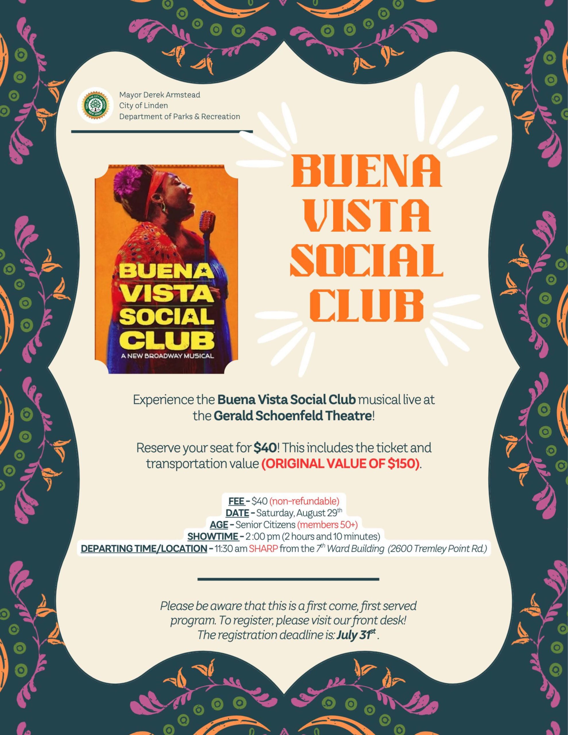 Mayor Derek Armstead, the City of Linden, and the Department of Parks & Recreation are pleased to offer Buena Vista Social Club.